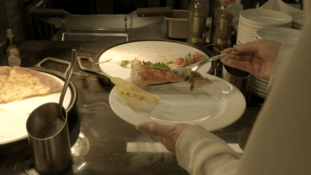 Person who arranges various dishes on plates at buffet