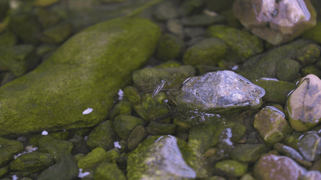 A serene stream with mossy rocks