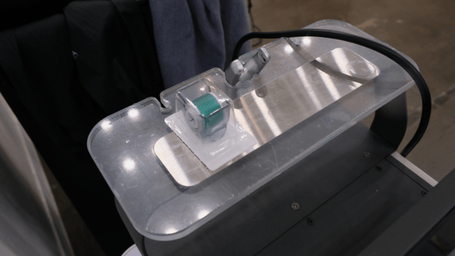 Close-up view of an industrial machine in a laboratory setting
