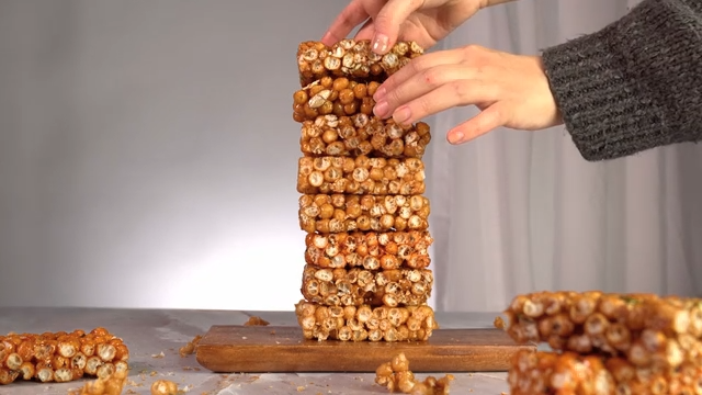 Oranda snack being arranged in a container