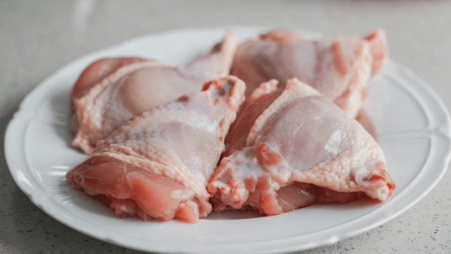 Raw chicken placed on a white plate