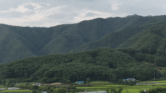 Lush green mountains under cloudy sky