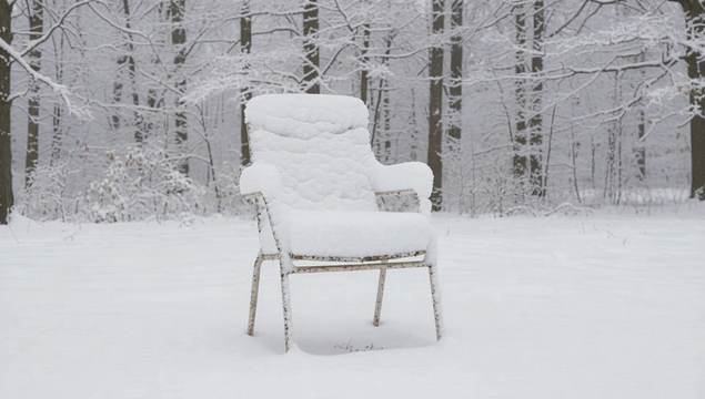 Chair covered in snow in a winter landscape
