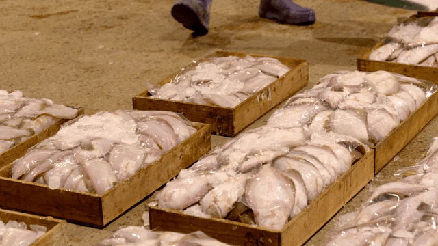 Pouring sauce into a bowl containing ice, vegetables, and conches