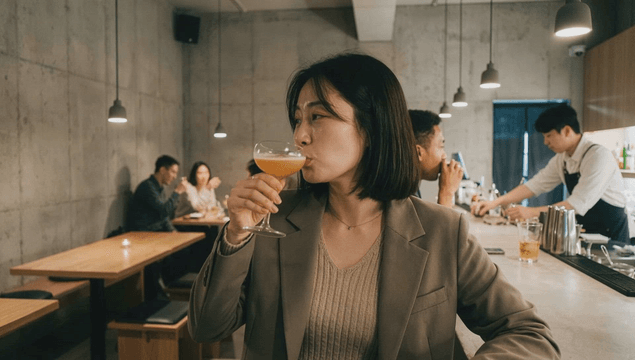 Woman sitting alone by the window on a rainy day, drinking soju.