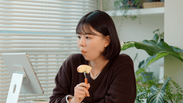 Young woman eating white chicken soup with chopsticks in mountain lodge
