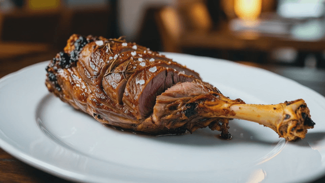 Roasted duck legs on white plate