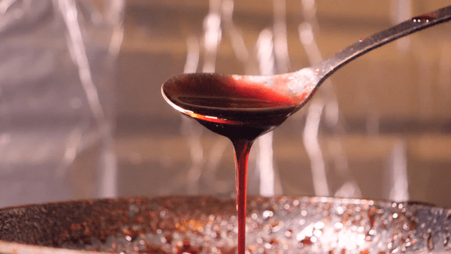 OysterSauce being poured into a bowl