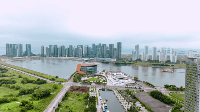 Urbanscape with Skyscrapers and Park with Green Spaces