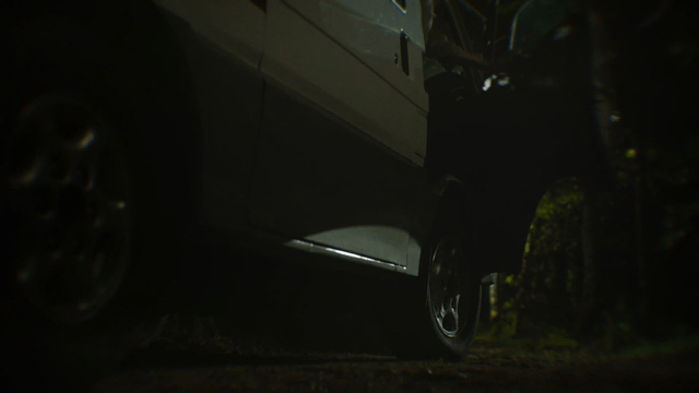 Car parked under a tree at night