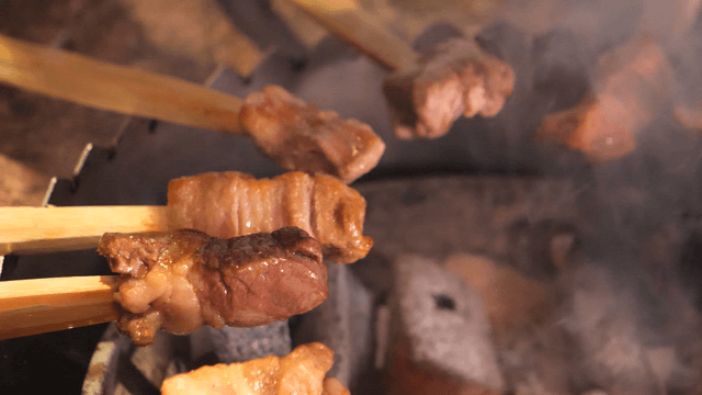 Primitive skewers grilled over charcoal brazier
