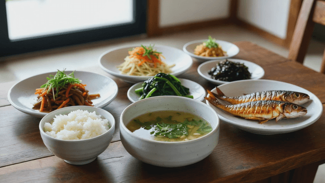 Hearty Korean meal with a variety of side dishes and grilled fish
