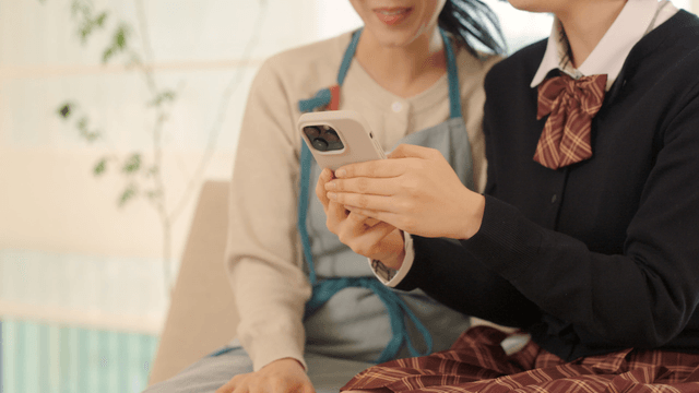 Mother and daughter looking at a phone