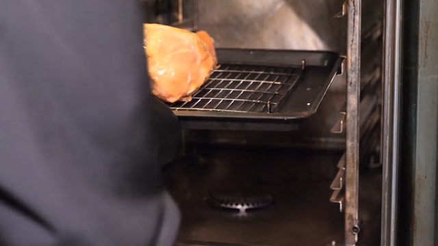 Chef preparing raw meat in a bowl with onions and soy sauce seasoning
