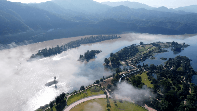 Mountain and foggy river scenery