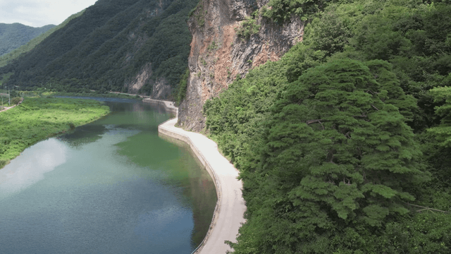 Aerial View of Serene Donggang River Meandering Through Lush Landscape