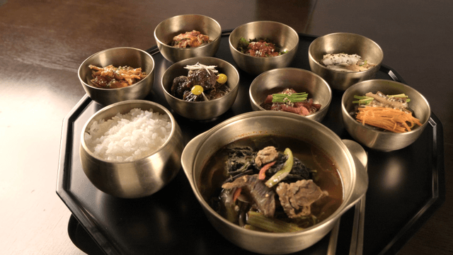 Korean beef soup with side dishes