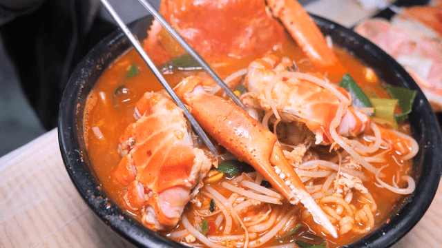 Spicy red crab ramen made with fresh ingredients