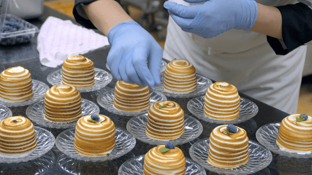 Chef preparing desserts with precision