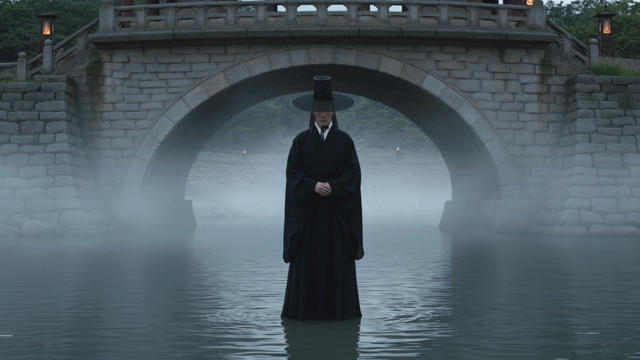 Haetae stone statue on the stone railing of Gyeongbokgung Palace