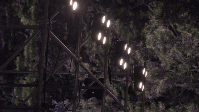 Colorful lights and stage setup at night