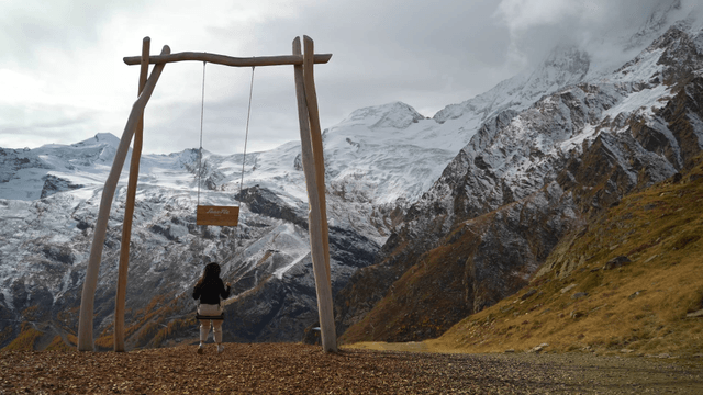 Saas-Fee Filled with Green Mountains and Pure White Eternal Snow