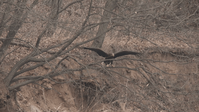 Eagle feeding on prey among branches