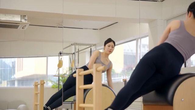 Woman Doing Pilates Using Exercise Equipment