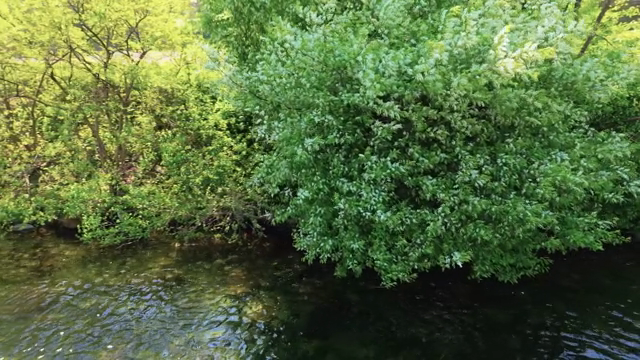 Peaceful lake surrounded by lush greenery on a bright afternoon