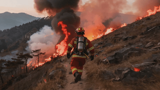 Firefighter Wearing Gloves and Holding Candle in Hand at Fire Scene