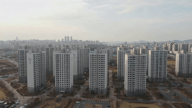 Densely populated urban area with high-rise apartment buildings during the day
