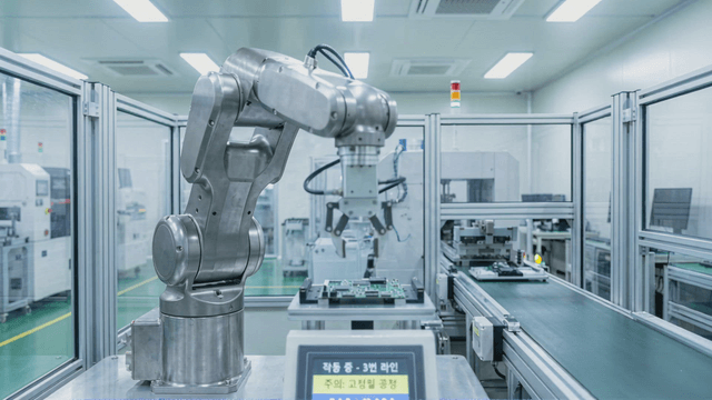Inside a bustling automotive manufacturing plant with machinery and assembly lines.