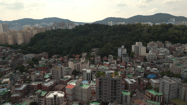 Dense Cityscape with Surrounding Mountains on a Cloudy Day
