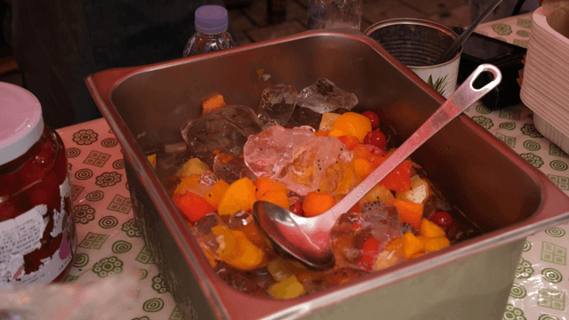Shaved ice topped with plenty of fruits