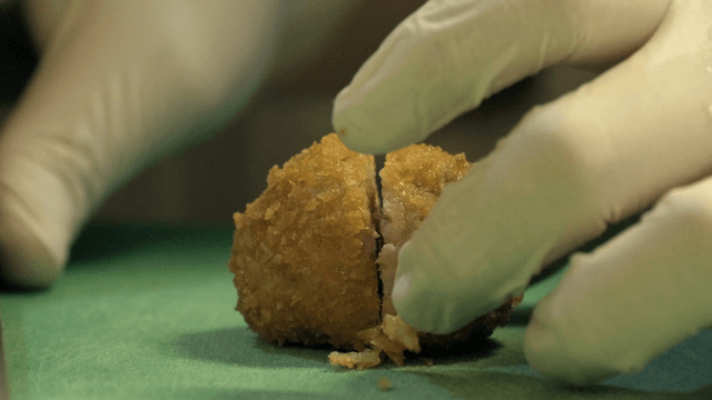 Slicing crispy Deep-fried Braised Pigs' Feet on a board