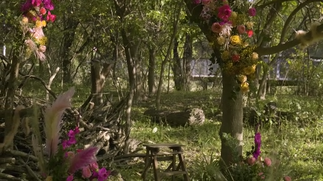 Forest decorated with colorful flowers