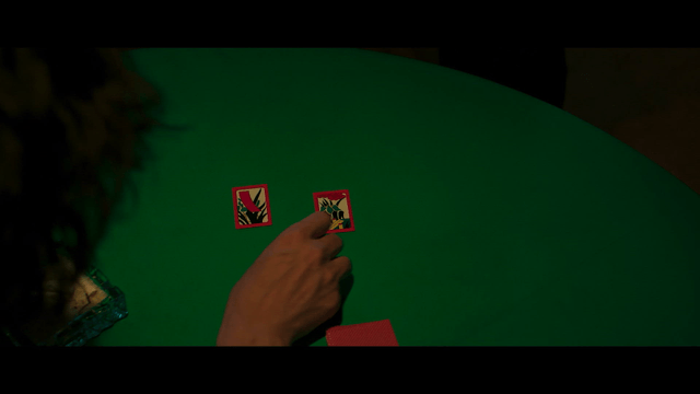 Person scattering Hwatu cards on table
