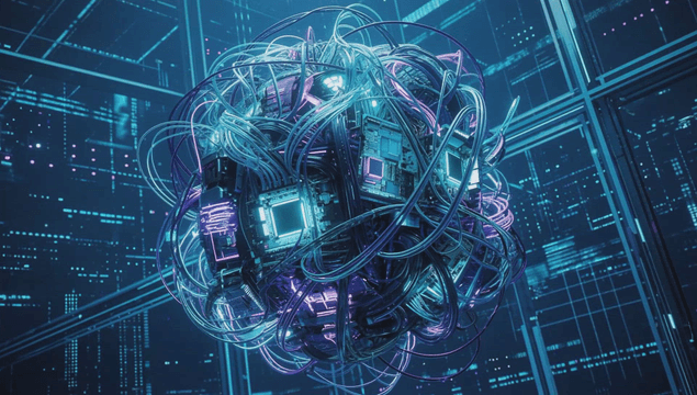 Complex network of glowing circuits