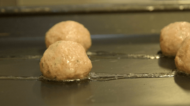 Chef preparing meatballs in a kitchen