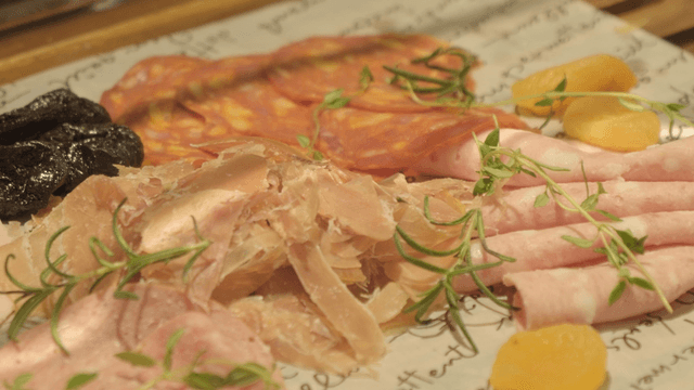 Person Crushing Ham in a Plastic Bag on a Cutting Board