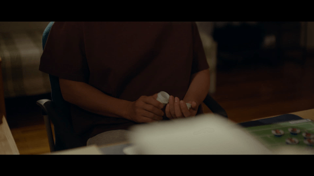 Person Passing a Medicine Bottle on a Table