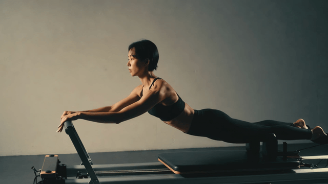 Woman practicing pilates on a reformer