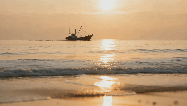 Serene sunset over the ocean with a boat