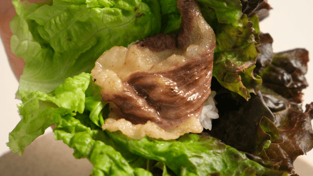 Lettuce wrap with meat, garlic, and onion