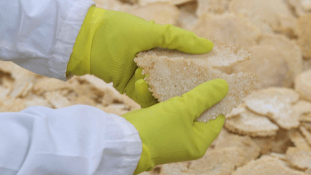 Hands wearing gloves handling salt