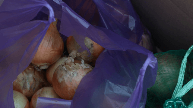 Fresh onions in a plastic bag