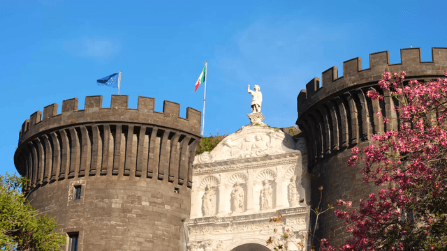 Historic fortress with Italian flag