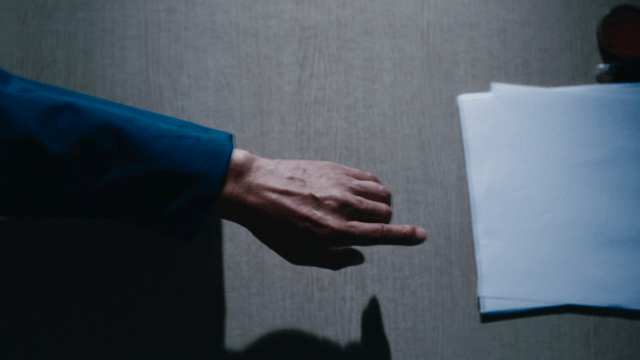 Prisoner giving statement in interrogation room and investigator questioning him.