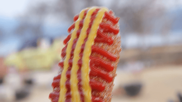 Crispy Potato Hot Dog Drizzled with Ketchup