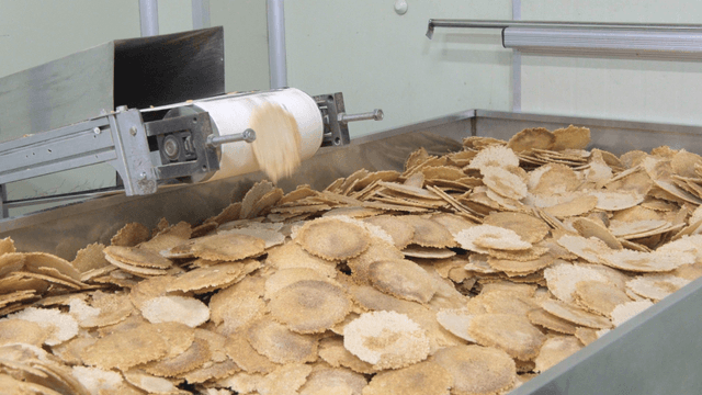 Rice crackers produced on conveyor belt